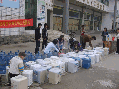 本网讯(见习学生记者 黄鸿强 张云英 李倩 报道)3月29日上午,化材学院青协分会和实用化学协会联合在东区学生宿舍、三里公寓及同大公寓3处设点开展饮水机义务消毒活动。化材学院青协和实用化学协会的负责人以及60名青年志愿者利用自己所学的专业知识对近200台饮水机进行了消毒。