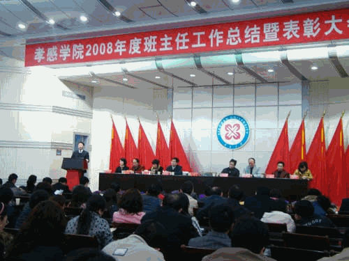 本网讯(学生记者 刘金萍 李小丽 报道)3月31日晚,文学楼学术报告厅灯火辉煌,我校2008年度班主任工作总结暨表彰大会在此隆重举行。出席会议的有:党委书记肖波、副院长谭晓明、校办主任盛继群、组织部部长高华、学工部部长黄颂、人事处处长冯仁熙、宣传部部长王平、团委书记姚娟及教务处副处长肖桂清。各学院院长,党总支书记、副书记,全体班主任、辅导员及学工部工作人员参加会议。会议由副院长谭晓明主持。